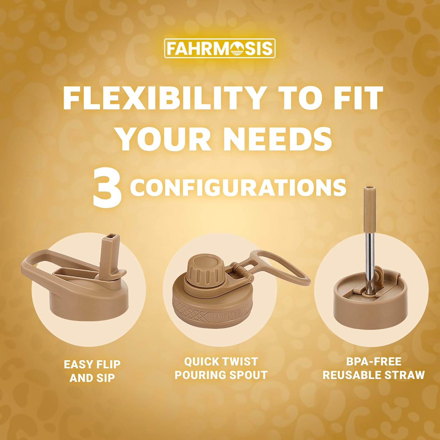 11 reviews for 40 Oz Water Bottle with Strap Stainless Steel Sports Water Bottle with 3 Lids (Straw, Chug and Flip Lid) Insulated Leak Proof Metal Jug for Men & Women – Gold Leopard
