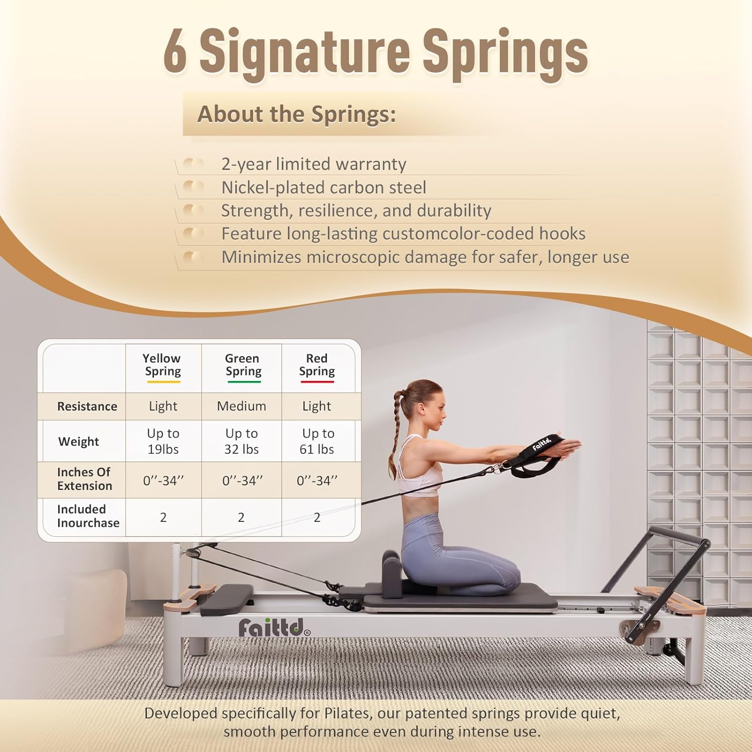 I was really nervous about buying this reformer since there weren’t many reviews, but I decided to take the gamble—and I’m so glad I did! I’ve been using it almost every day for the past 5 months and it’s been amazing. The reformer has everything I need, and the springs work perfectly—just as smooth and strong as the ones I’ve used on more expensive brands like Merrithew, Balanced Body, and Peak Pilates at the studios I used to go to. For the price, this reformer is honestly such a great value. I’m genuinely surprised (in the best way) and super pleased with the quality. I wanted to leave this review in case it helps someone else who’s on the fence like I was!