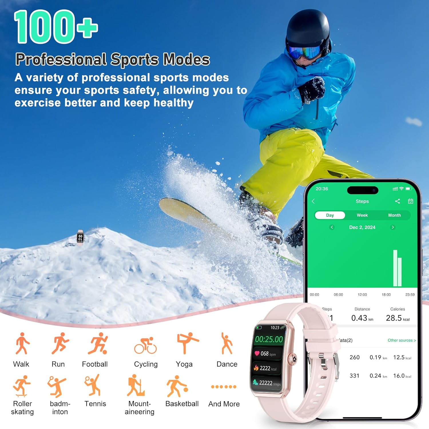 100+ Sports Modes: Featuring over 100 sports modes, the watch provides data support for a wide array of physical activities, assisting you in monitoring your exercise performance and tracking your progress