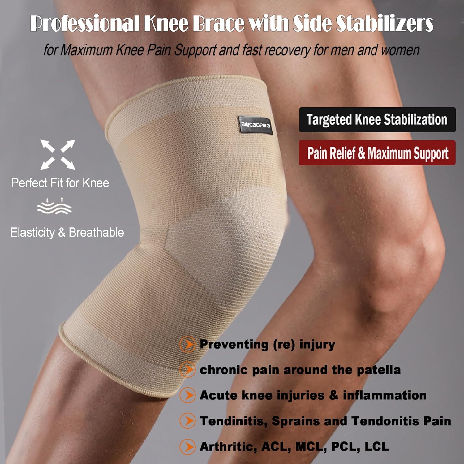 BingboPro Knee Braces for Women and Men – Compression Knee Sleeve for Knee Pain, ACL, Joint Pain Relief, Knee Support for Working, Running, Fitness