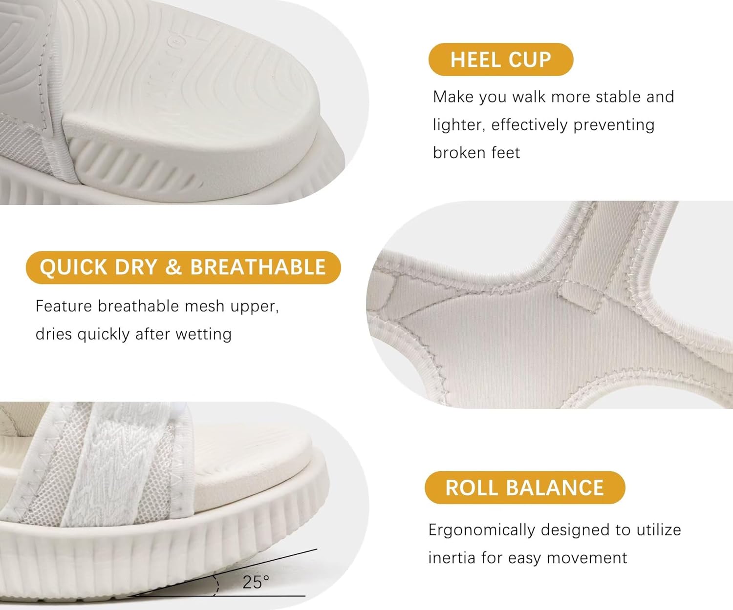 These sandals are nothing short of amazing. I rarely leave reviews but feel compelled to do so to help other women make their decision. I tried and returned 4 other sandals, all claiming to absorb shocks and help with joints and plantar fasciitis and none did. I needed something to stabilize my foot and ankle and they had to REALLY absorb shocks. I walk on dirt trails with dogs, uneven terrain, city streets, stairs, grass etc. Wearing the wrong shoes creates pain in my feet, knees, hips and lower back and makes me utterly miserable. So the fact I put these on 4 days ago and have not taken them off since is a miracle. No pain. As in absolutely ZERO pain. They have a firm base, straps that are adjustable and incredibly comfortable–no rubbing or discomfort. There is a softer squishy foot bed that absorbs all the shocks. I am a heavy heel walker, my husband often comments that he can hear me a floor away if I am walking barefoot on the wood floors because my heels hit hard. There is literally no sound when I wear these. Got my first compliment yesterday and am logging on now to buy another pair. I want to thank the designer and engineers who worked on this sandal because it is brilliantly designed. I did not know sandals like this existed. I love my Hoka sports shoes and now I have sandals that I adore just as much. The price is affordable too. Thank you.