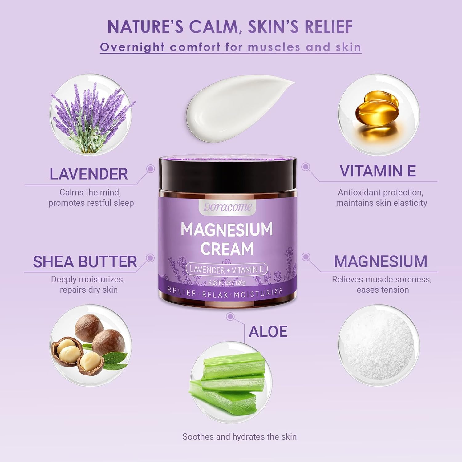 Lightweight, Non-Greasy Skin Feel — Cream-lotion texture glides on smoothly, absorbs fast, and won’t stain socks or bedding. Comfortable for nighttime use and breathable under pajamas, leaving skin soft and hydrated.