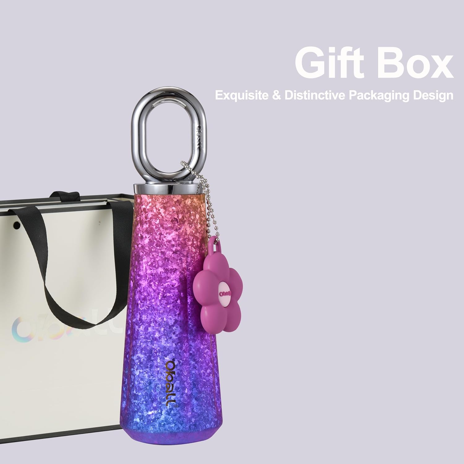 Stylish Design: Our insulated bottle featuring a convenient handle and elegant pink & purple look—ideal for daily use, travel, or as a gift.