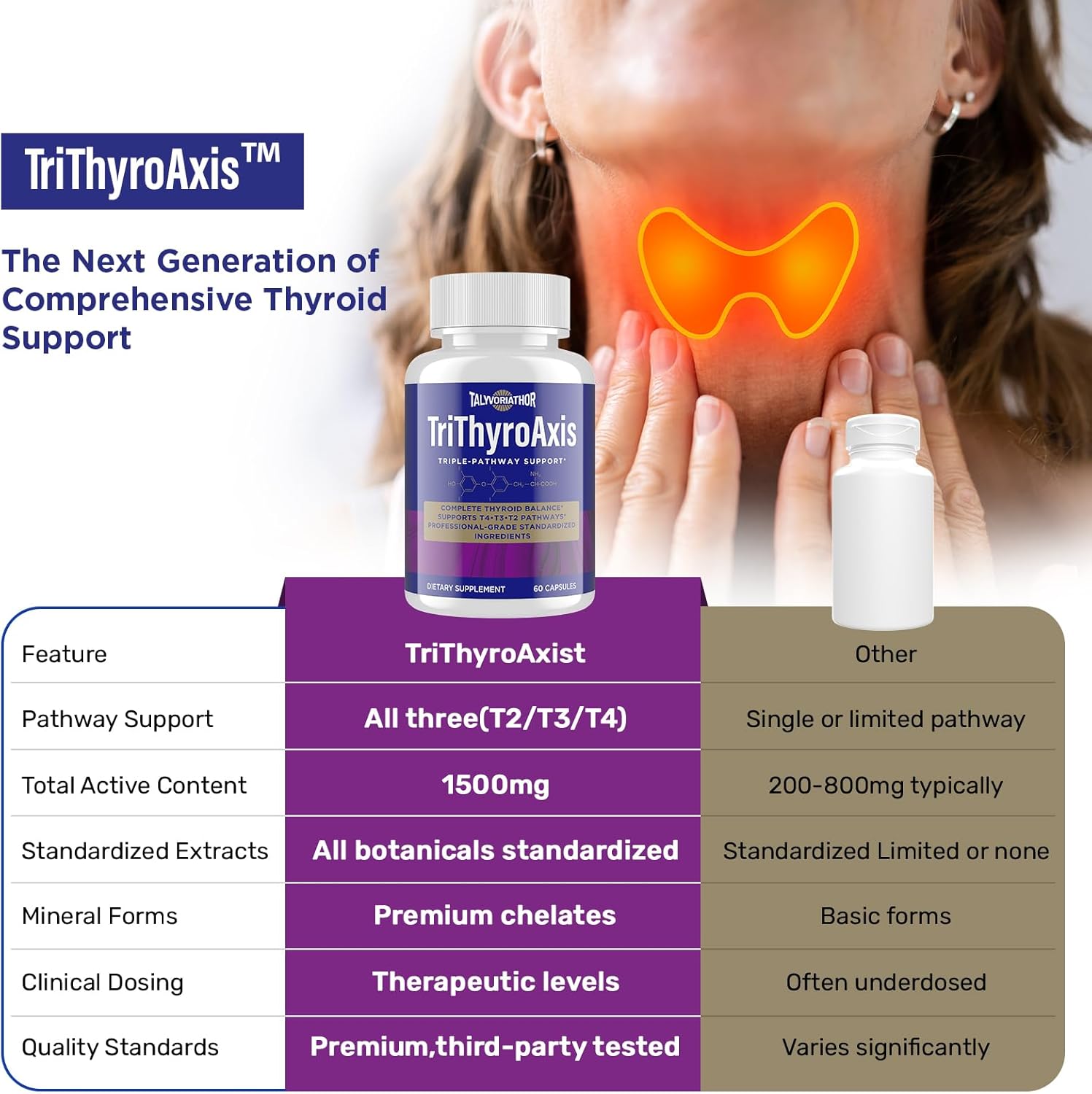 Advanced Triple-Pathway Thyroid Support: Emerging research shows that supporting all three thyroid pathways is key to optimal thyroid wellness. TriThyroAxis is the first thyroid supplement scientifically designed formula to support T4 production, T3 conversion, and T2 metabolism in one. Unlike competitors that target just one pathway, TriThyroAxis support for women provides comprehensive thyroid balance for energy and metabolism.