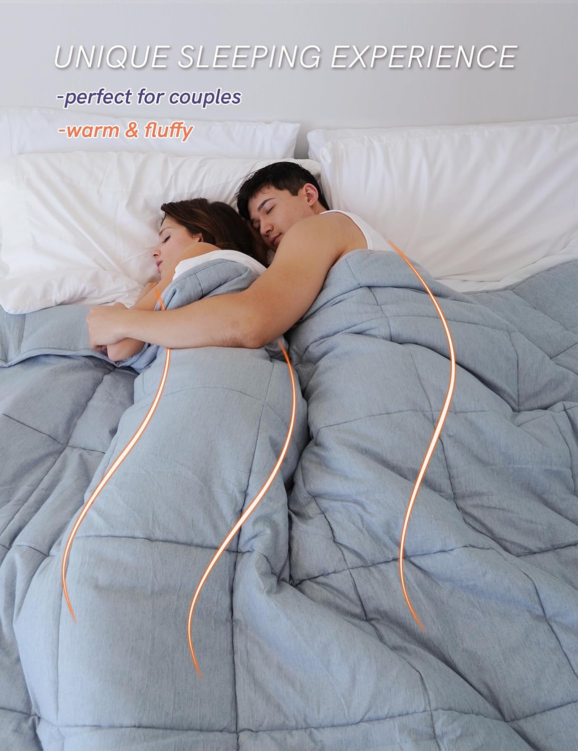 [Unique Sleeping Experience] Enjoy a warm snuggle feeling of a cosy weighted comforter, perfectly couture to your body and make you feel like in swaddle. The ultimate gift for two, the perfect way to unwind together.