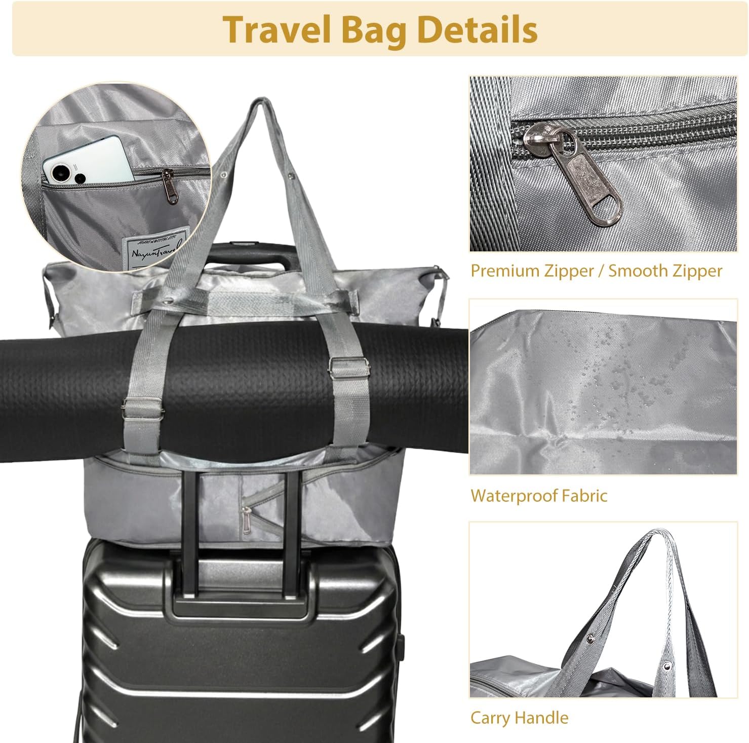 【Ample Organized Storage】This tote bag features large capacity and multiple pockets for optimal organization. It includes a large main pocket, a wet pocket, an inner pocket and a front pocket. Keep your essentials like chargers, passports, wallets, keys, and earphones neatly stored and easily accessible!