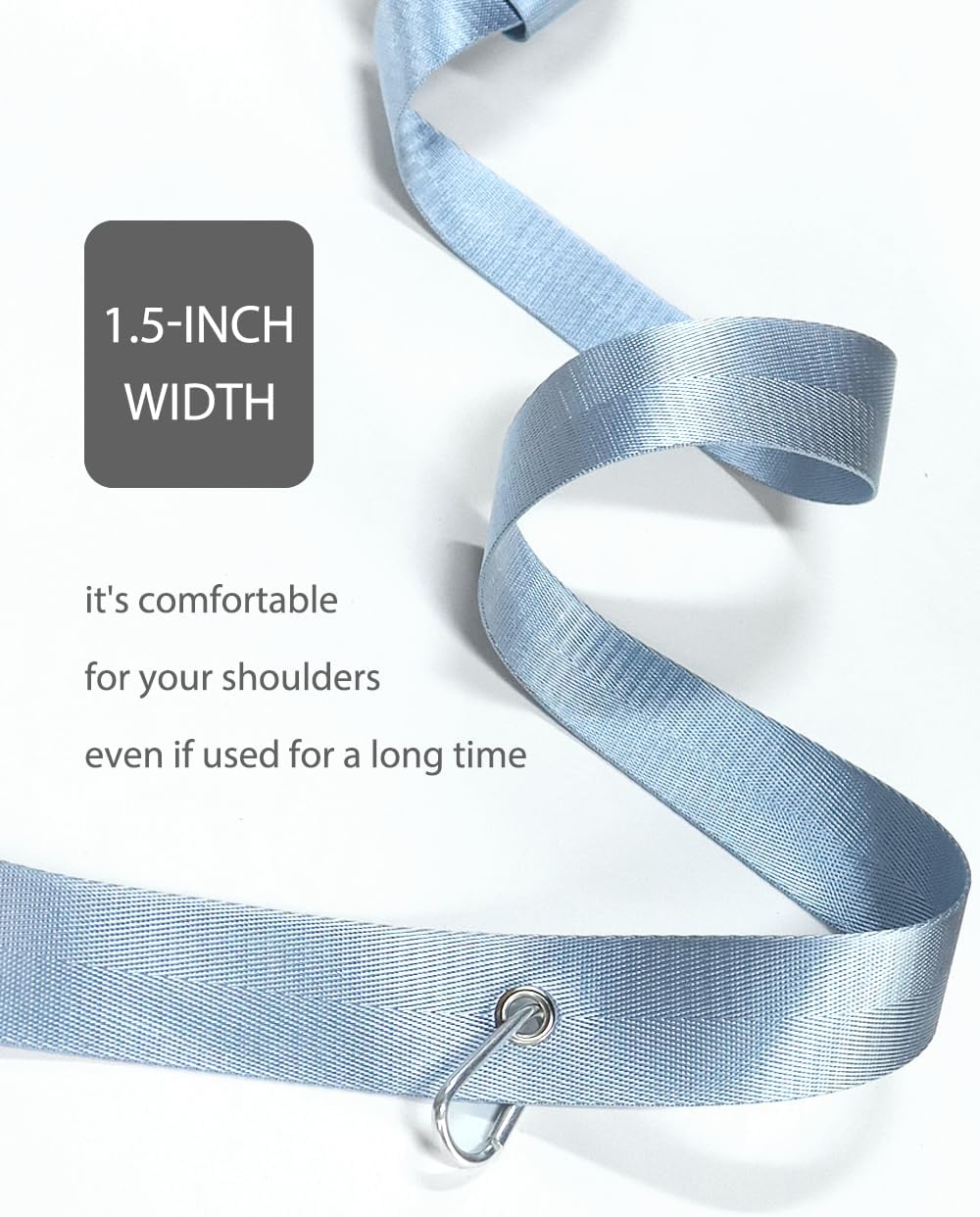 I ordered the Sky Blue Yoga Mat Strap with Carabiner Clip for my wife, and she’s been thrilled with it. She had been using the elastic bands that came with her yoga mat, but they stretched out quickly and stopped holding the mat securely. This polyester strap has been a game-changer. She says the material feels smooth and soft to the touch, yet it grips the mat firmly when tightened, keeping it neatly rolled without slipping open. Unlike elastic, it doesn’t stretch out, which makes it much more reliable for her daily yoga sessions.The 1.5-inch wide strap is comfortable on her shoulder, even when she’s carrying her mat across town to her yoga studio. She can adjust the loops easily to fit her mat, which is about 1cm thick, and she likes how simple it is to tighten or loosen depending on how she rolls it. The stitching looks sturdy, and the material feels durable, though she’s curious to see how it holds up over time with regular use.She also loves the soft sky blue color, which adds a polished look compared to the plain rubber bands her mat came with. The carabiner clip is a thoughtful touch—she hooks her keys or water bottle to it, keeping her hands free while heading to class. She’s even used the strap to carry her roller skates and found it helpful for stretching, too.Overall, my wife says this strap makes carrying and storing her yoga mat so much easier and more comfortable. It’s a practical, well-made accessory